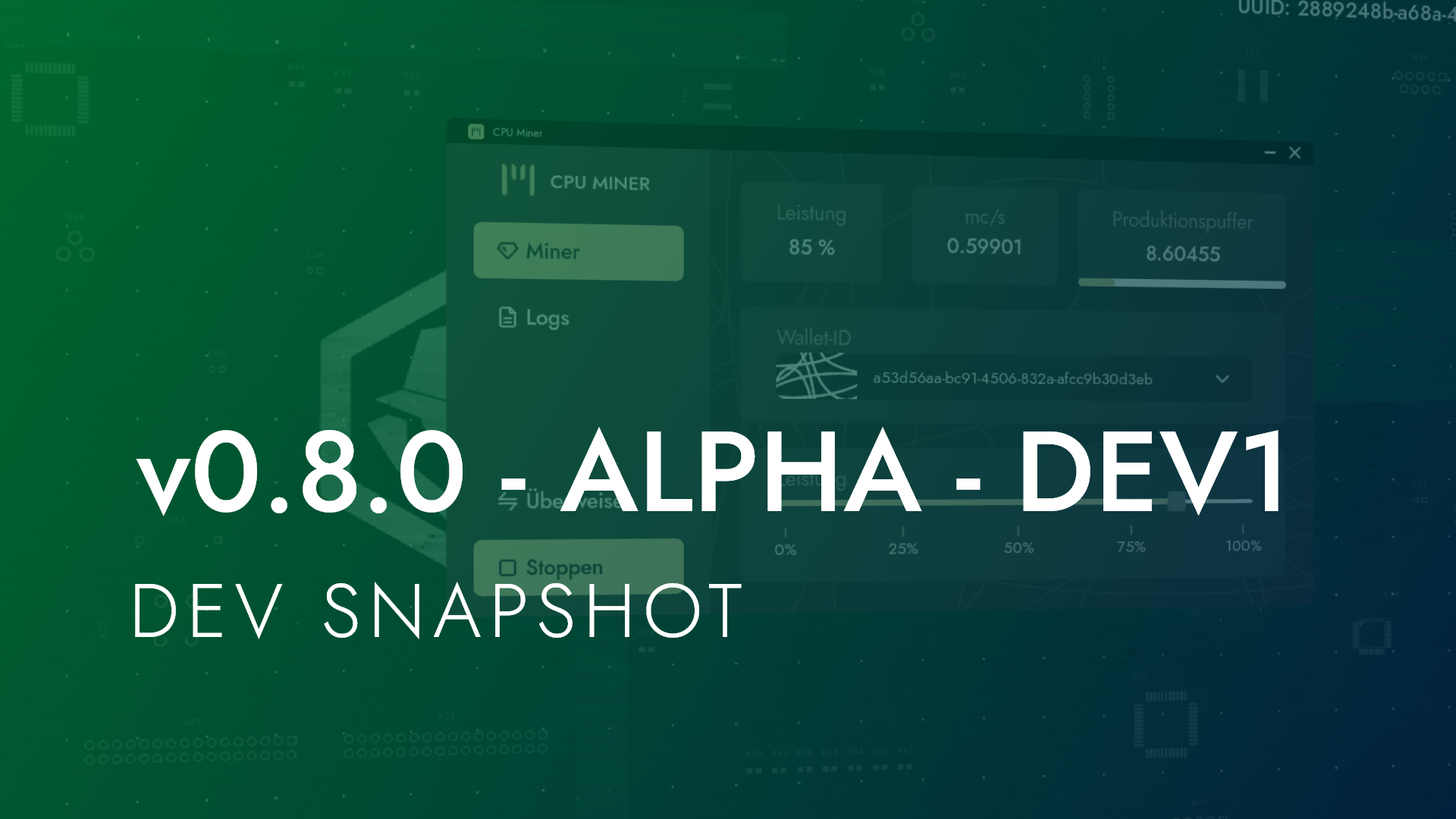 In der Version 0.8.0-alpha.dev1 starten wir durch mit einer weiteren wichtigen Kernmechanik, der CPU-Miner. Dieser bringt uns Ingame-Geld ins Spiel.